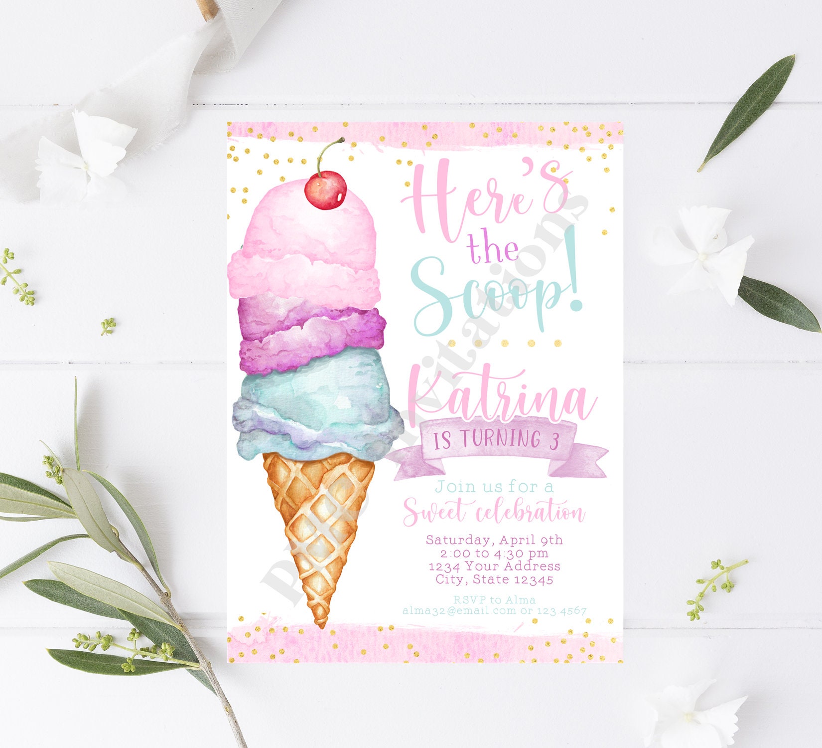 Buy Custom Printed 5x7 Watercolor Ice Cream Birthday Online In India Etsy
