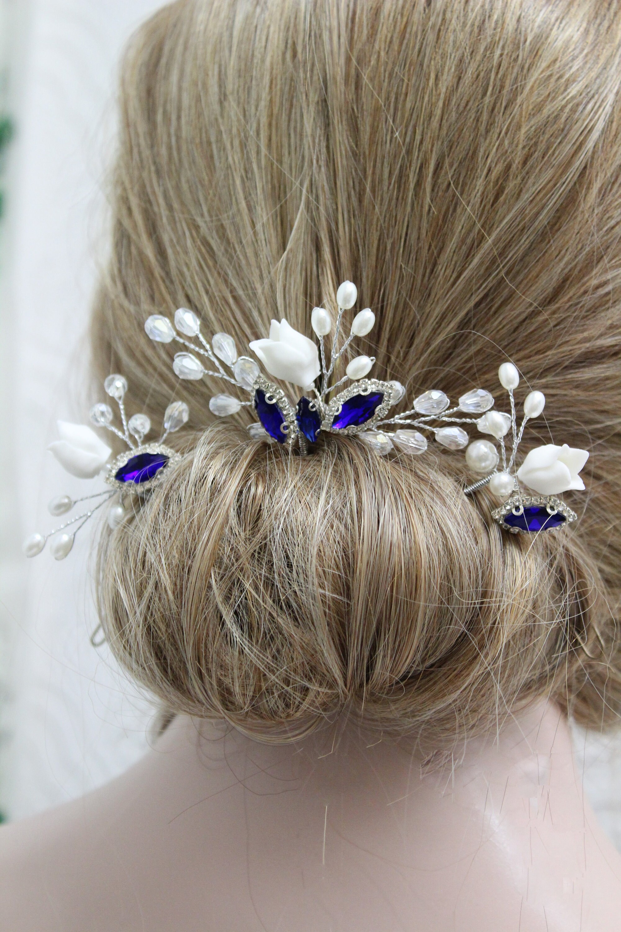 Web Blue Sapphire Wedding 2 Hair Pins Set Blue Bridal Pearl Headpiece for Brides Bridesmaids Blue Green Hair JewelryProm Pearl Hair Jewelry DazzlingLilia 221. Web One set of 5 Sparkling Sapphire Blue Rhinestone Hair Pins featured on assorted pins to choose from. RavenHillArt 407 19800 More like.
